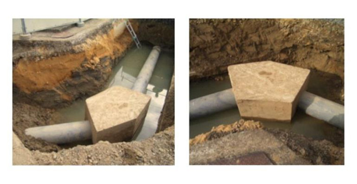 支墩的受力面必須靠在原狀土的後(hòu)背牆(qiáng)上,如果無原狀土後(hòu)背牆(qiáng),混凝土的受力必須承受管道的推力。