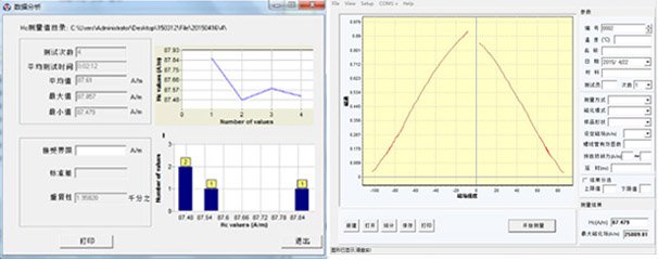 ⑴、MATS-2010SD軟磁直流測量裝置可自動測量軟磁材料在靜态(直流)條件下的基本磁化曲線和磁滞回線,準確(què)測量起始磁導率μi、最大磁導率μm、飽(bǎo)和磁感應強度Bs、剩磁Br、矯頑力Hc和磁滞損耗Pu等靜态磁特性參數。
